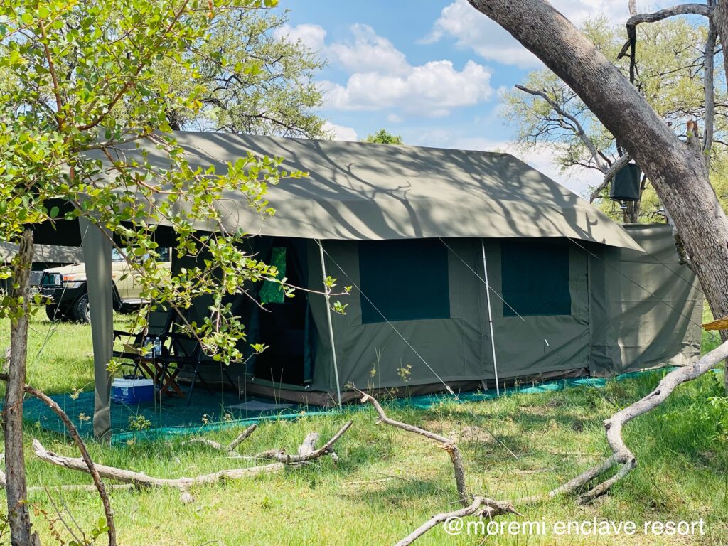 Nestled within the Okavango Delta’s UNESCO World Heritage site, Moremi Enclave Resort offers luxurious tented accommodations and eco-friendly safari experiences. As the gateway to Moremi Game Reserve, the resort provides guests with unforgettable game drives, bushwalks, and mokoro rides amidst Botswana’s stunning wilderness.